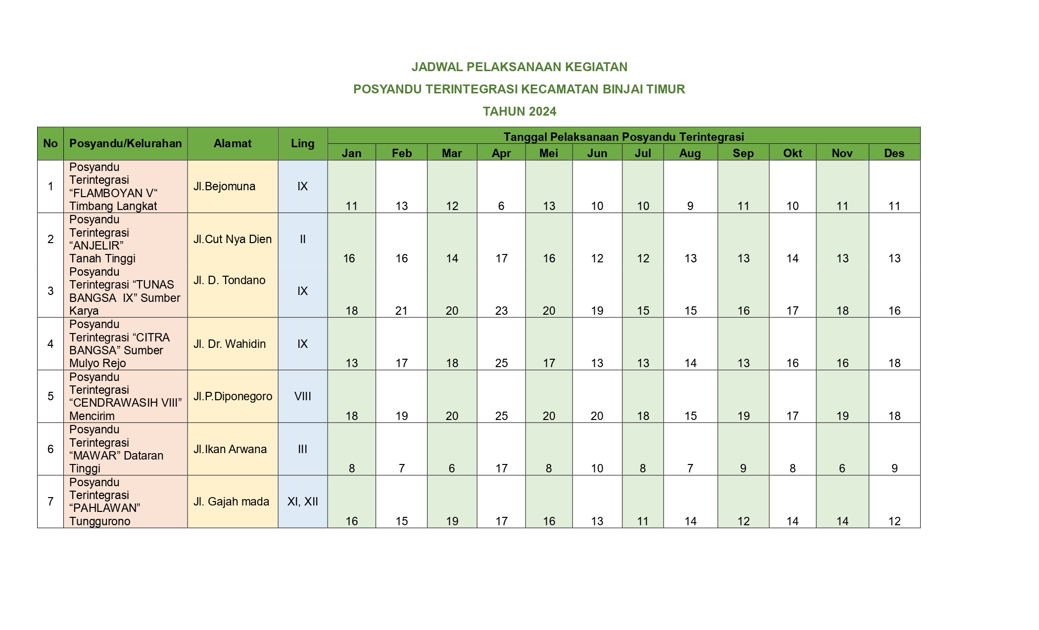 Jadwal PosyanduTerintegrasi Kecamatan Binjai Timur
